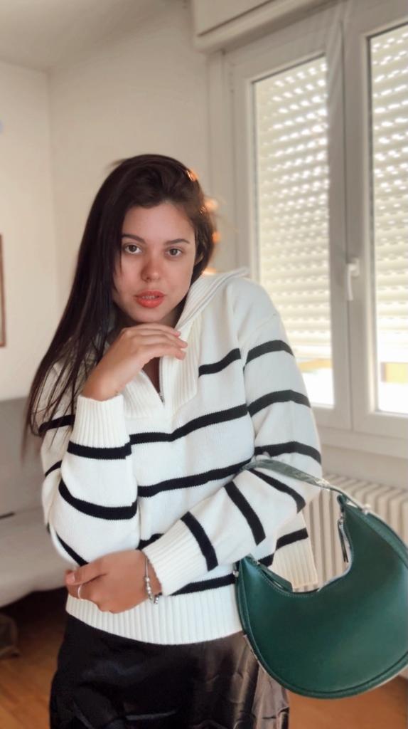 Rollkragen-Freizeitpullover für Damen, lockeres, gestreiftes Strickoberteil mit Reißverschluss