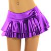 Glänzende Metallic-Low-Rise-Miniröcke für Damen mit Rüschen und Falten, Rave-Party, Clubwear