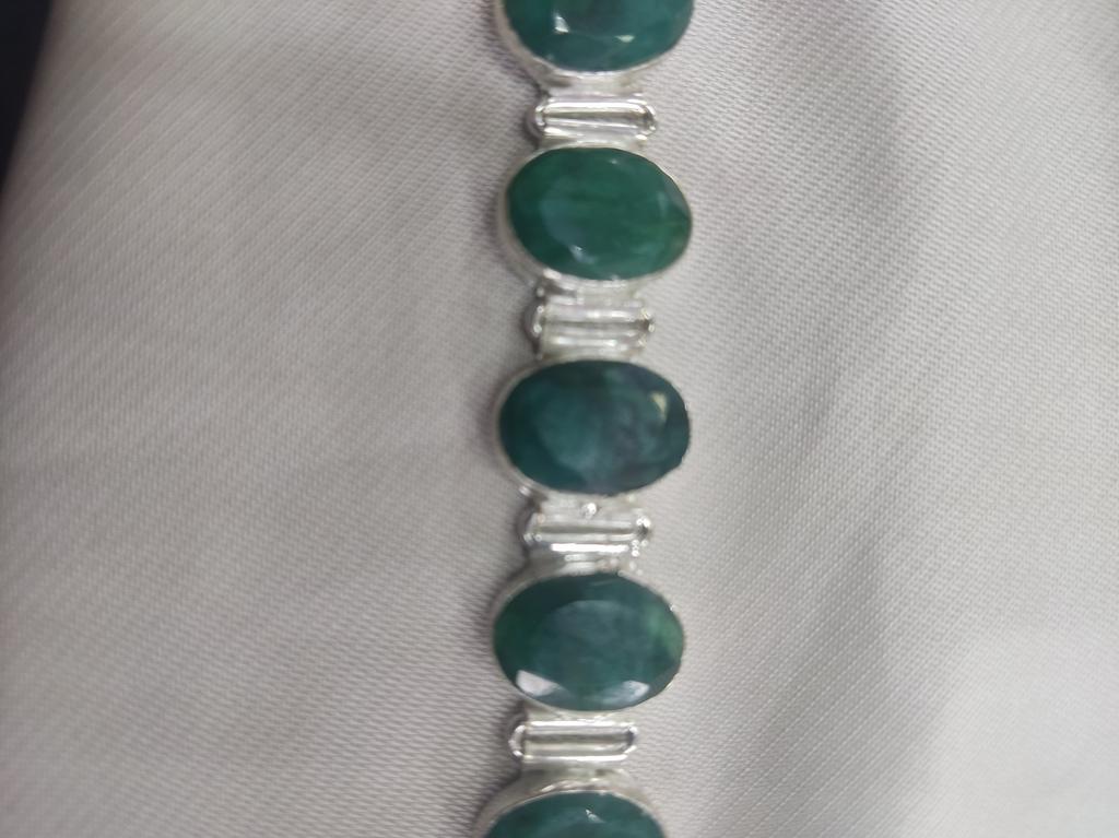 Ich glaube, das Armband ist nicht aus Silber und schon gar nicht aus einem Smaragd. Vielleicht irre ich mich.