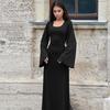 Mode Sexy Solide Rippen Flare Hülse Maxi Kleid Frauen Lace-Up Straps Kleider Frauen Herbst Elegante Büro-dame kleid Kleidung 29614