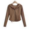 Herbst Mode Cropped Hoodies Frauen Full Zip Up Hoodie Koreanische Mode Sweatshirts Mit Kapuze Nette Lange Hülse Crop Top Sexy Schlank