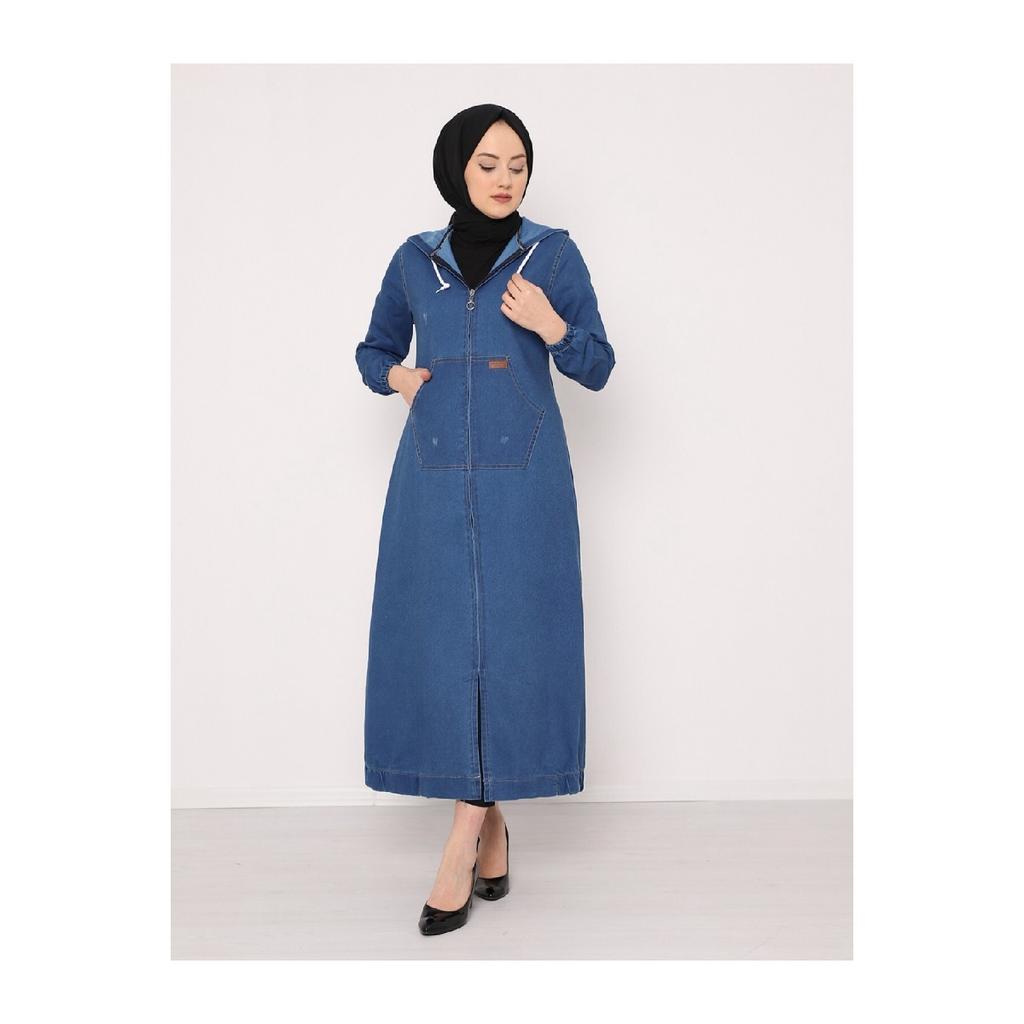 Durchgehende Jeanskappe mit Kapuze und Reißverschluss