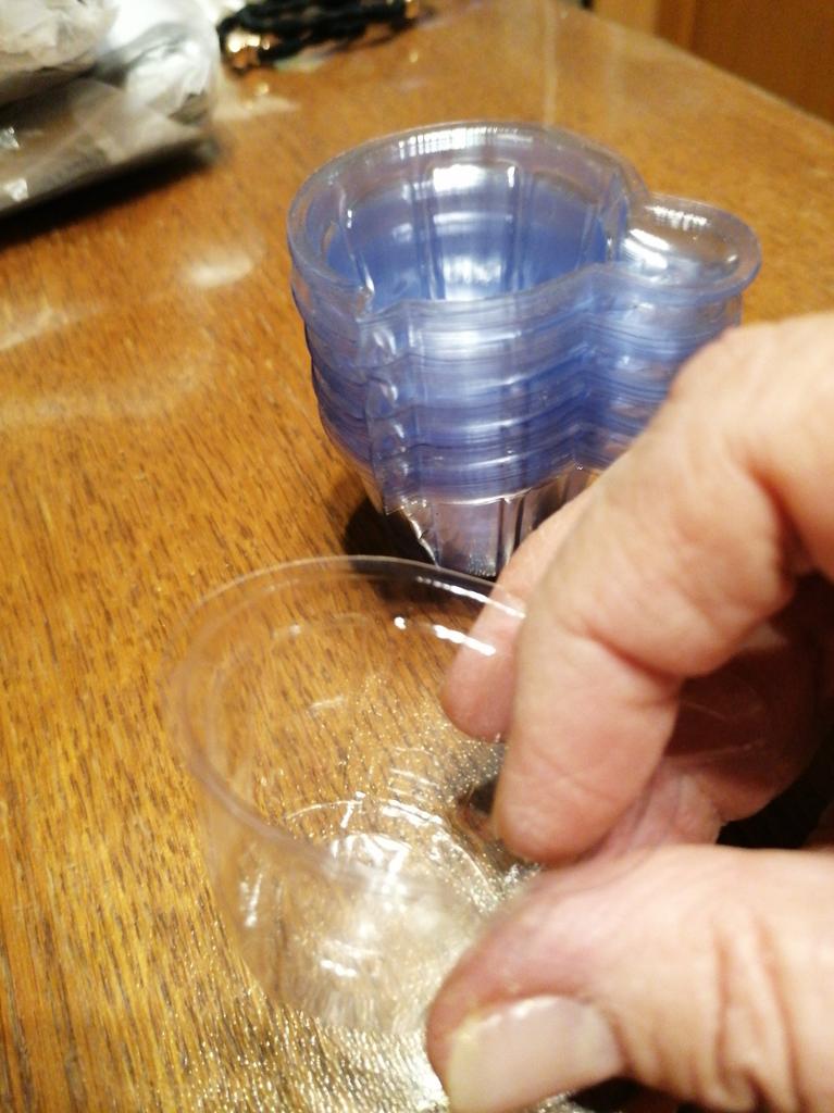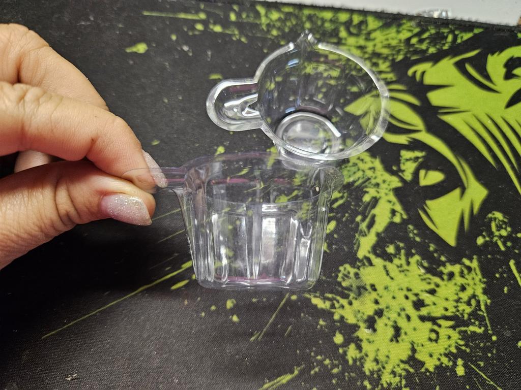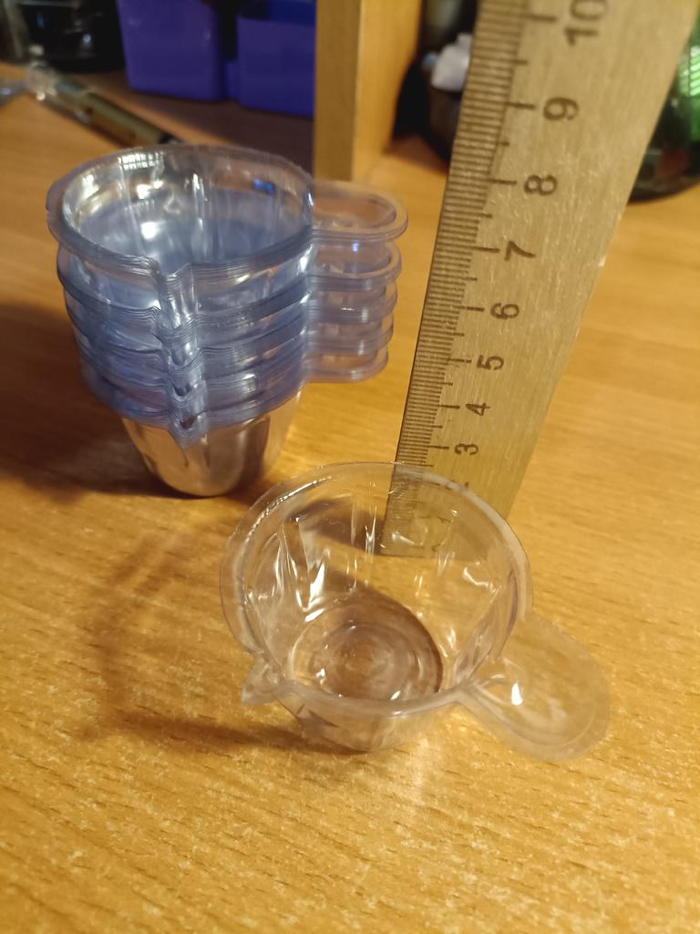 Kleine Einwegbecher aus Plastik. Nicht schlecht für ein Epoxidharz.
