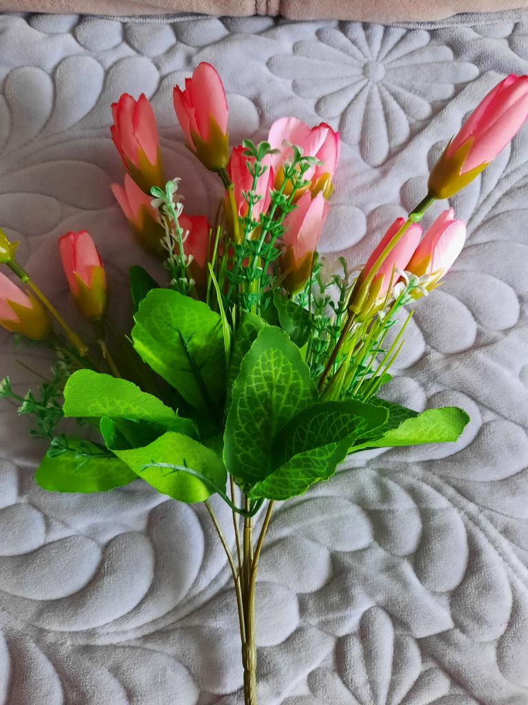 Zarte Blüten, entsprechen den angegebenen Größen. Ich habe es für Radonitsa mitgenommen, es wird ein wunderschöner Blumenstrauß daraus.