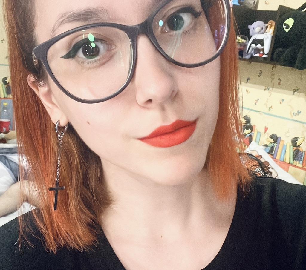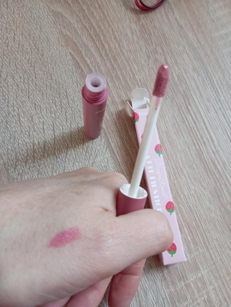 Der Lippenstift ist matt und wird gleichmäßig in einer Schicht aufgetragen. Trocknet schnell, hält gut. Süße Ohrringe wurden mit dem Lippenstift als Geschenk verschickt. Danke