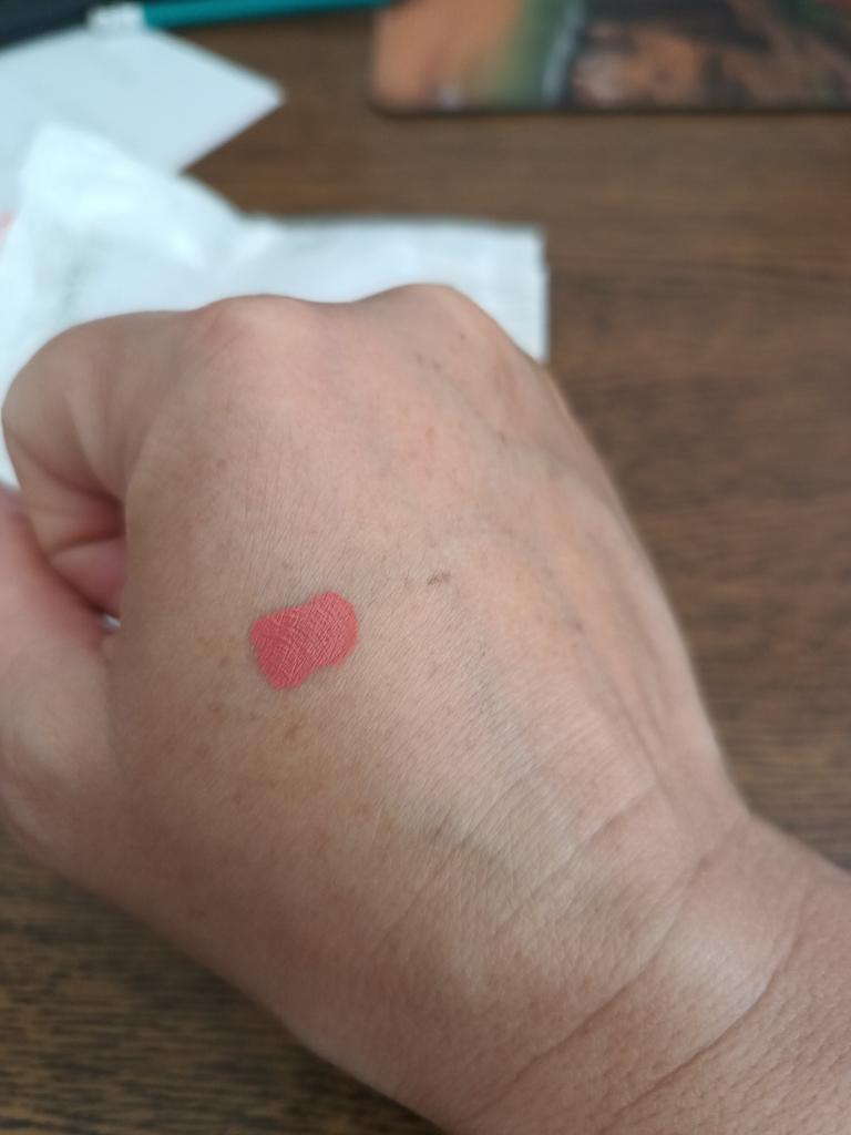 Mir gefällt nicht, wie es auf den Lippen sitzt, es trocknet zu hart und fühlt sich an wie Sand, und die Farbe ist heller als auf dem Foto, ich empfehle es nicht (ich gebe 5 Sterne, um die Rezension zu sehen)