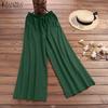 Übergroße Frauen Casual Feste Elastische Taille Breite Bein Hosen Lose Lange Flare Hosen