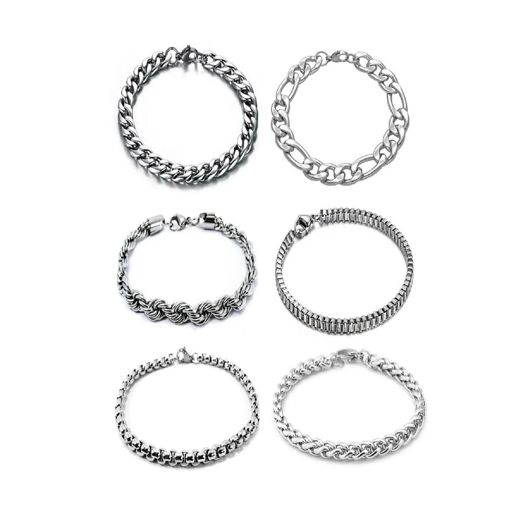 Set mit 6 Armbändern: Gurmet, Figaro, Auger, Cube, gestrickt und Angelus