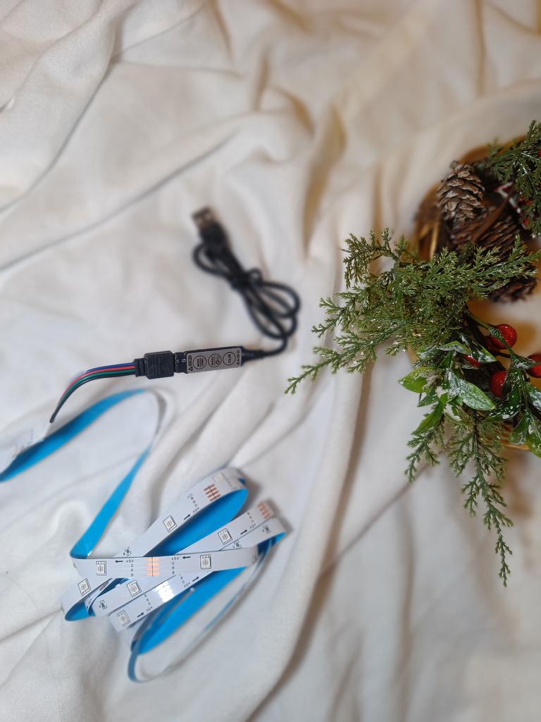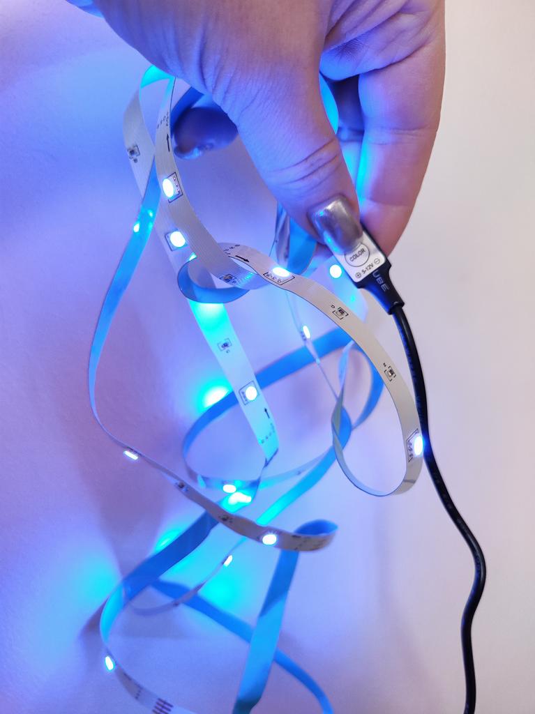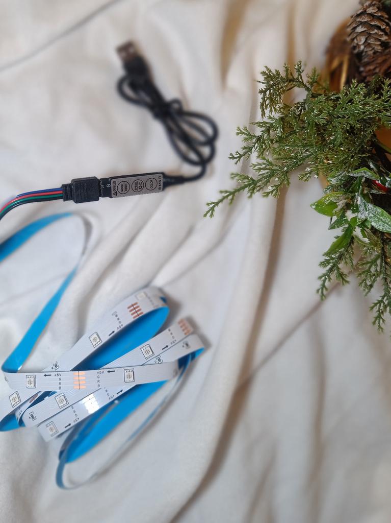 Ein zwei Meter langer LED-Streifen, den meine Tochter als Kinderzimmerdekoration bestellt hat. Mein Band heißt 3 Key 2m. Es ist zwei Meter lang, verfügt über 24 LEDs, wird über einen USB-Anschluss an das Netzwerk angeschlossen und verfügt über Bedientasten. Es gibt nur drei Tasten, Sie können die Art des Blinkens, die Blinkgeschwindigkeit und die Farbe ändern. Das Klebeband ist selbstklebend, es ist sehr praktisch, es zur Raumdekoration zu verwenden