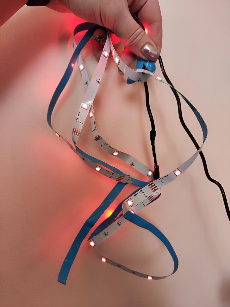Bomben-LED-Streifen💥💥💥 Unrealistisch cool! Ich habe die Länge 2 m genommen, jetzt denke ich über Neuanschaffungen nach!!! 🤩🤩🤩 2M zum Testen)) mit doppelseitigem Klebeband im Schlafzimmer befestigt. Und es eignet sich hervorragend zur Beleuchtung in der Küche über der Arbeitsplatte, im Kinderzimmer usw.) Der Knopf passt, wie eine Girlande, die Blinkgeschwindigkeit und -farbe an. Cool🙈🤩 Empfehlen❣️❣️❣️ Kleines Video))