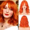 Synthetische gewellte Bob-Perücken, 35,6 cm, Cosplay, mittlere Perücke mit Pony, natürlicher Haaransatz, Orange, Lila, Rosa, Blau, Perücken für Frauen