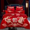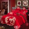 Vierteiliges Hochzeitsset aus Baumwolle, mehrteiliges Set aus reiner Baumwolle, verdickt, gebürstet, chinesische Hochzeit, Schwerindustrie, Stickerei, Hochzeitsset