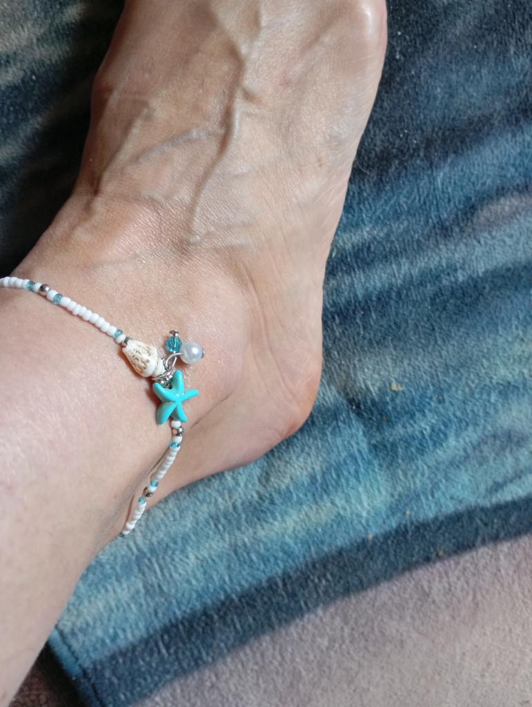 Boho Lady Perlen Seestern Charm Barfuß Sandale Fußkette Fußkettchen Knöchelarmband