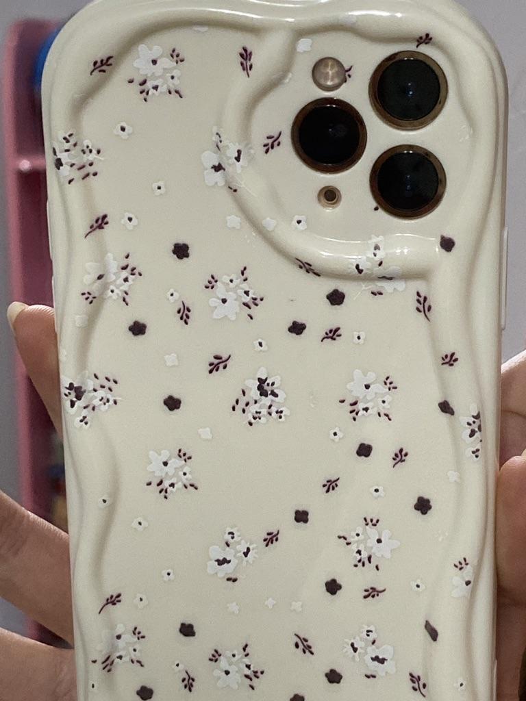 Cremefarbene, geschwungene, glänzende, weiche Silikonhülle mit Blumenmuster, Handyhülle für iPhone, Samsung und Xiaomi