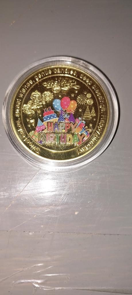 Bunte Geburtstagskuchen-Münzenmedaille, kreatives Geburtstagsgeschenk, Metallhandwerk, Eisen, vergoldet, versilberte Geschenke