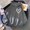 Herz Druck Frauen Sweatshirt Weiche Casual Lose Vintage Weibliche Hoodies Winter Warme Fleece Student Tops