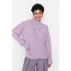 Ecru-Strickpullover mit breitem Muster und weicher Struktur und hohem Kragen Twoaw21kz0783