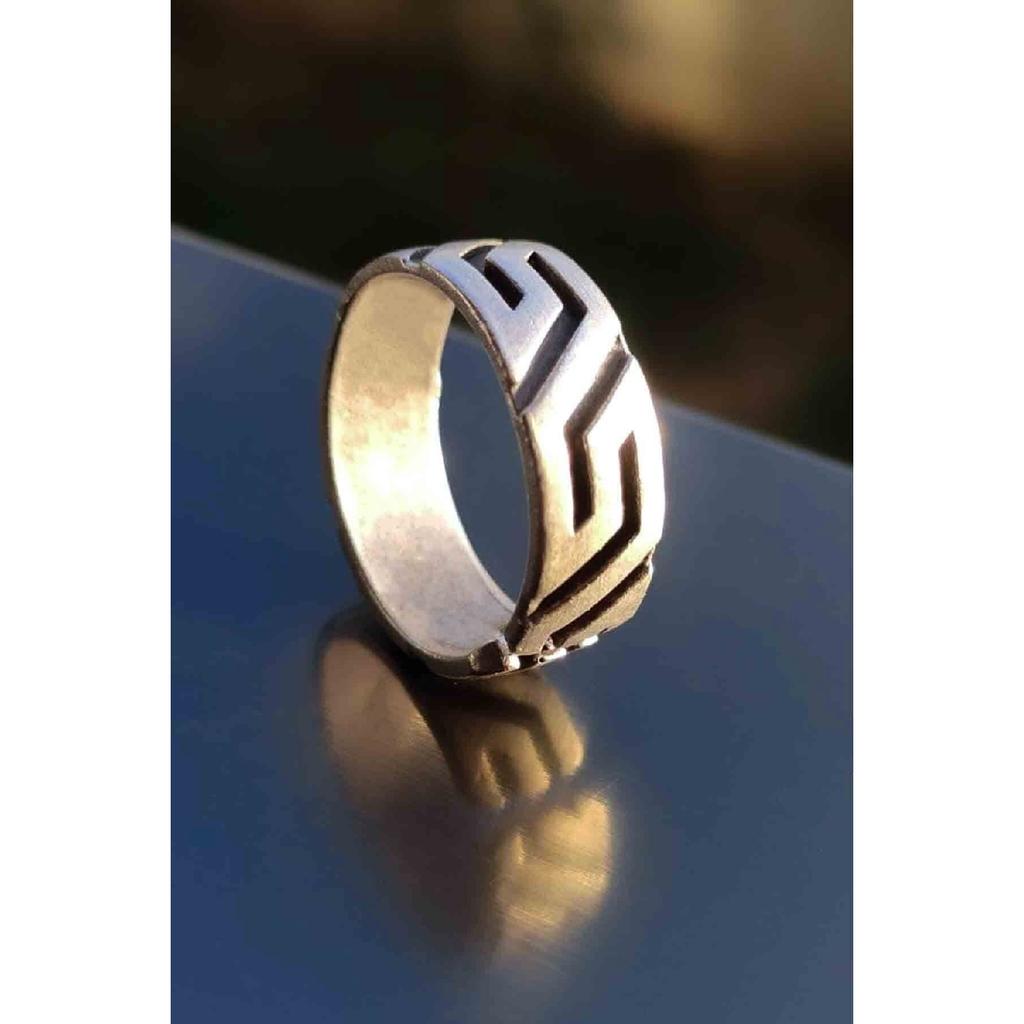 Verstellbarer, versilberter Ring mit Titanmuster-Modell