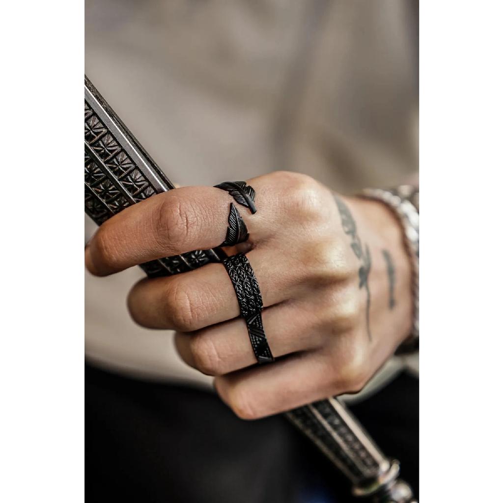 Schwarz plattiertes, verstellbares Ringset für Herren