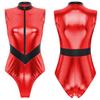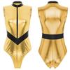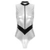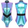 Modischer Farbblock-Body für Damen mit Reißverschluss, Stehkragen, metallisch glänzender, ärmelloser Catsuit für Party, Club, Musikfestival