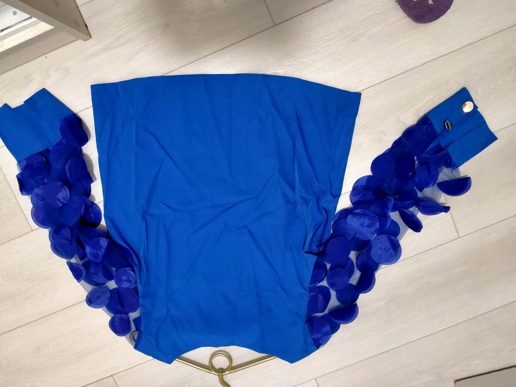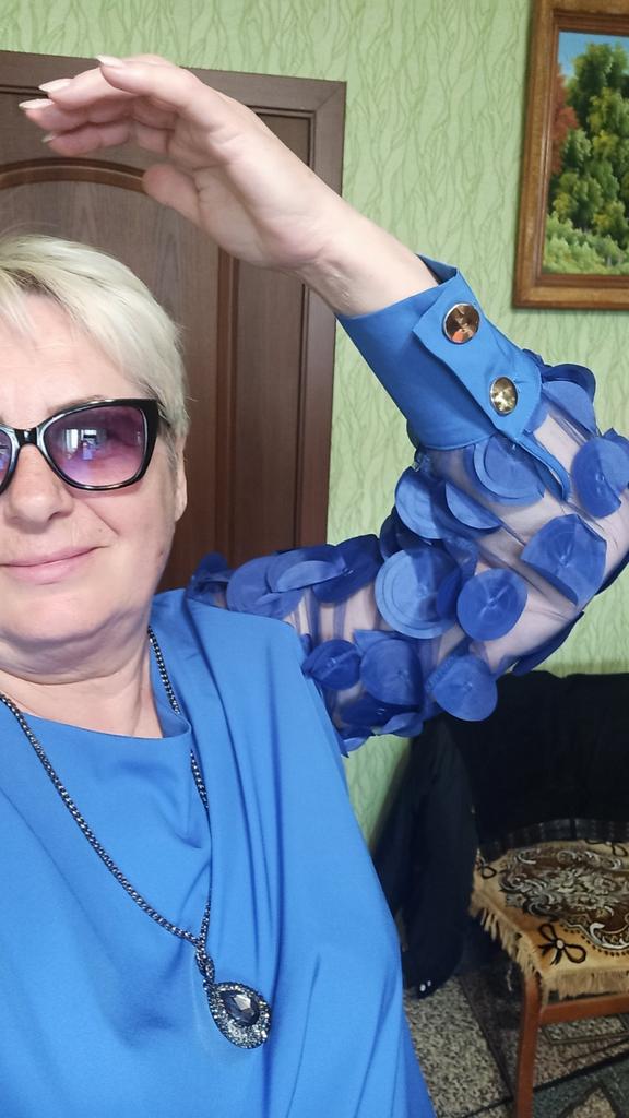 Die Bluse, die ich erhalten habe, hat die richtige Größe, aber die Farbe ist überhaupt nicht die gleiche, die Ärmel sind dunkelblau und die Bluse selbst ist hellblau, wie ausgeblichen, und aus irgendeinem Grund hinten, wo der Schnitt hervorsteht und ist nicht schön, ich hatte einen anderen Effekt erwartet