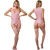 Glänzendes Damen-Teddybär-Dessous-Set mit Schlüsselloch, Strumpfgürtel, Tops, Body mit Tanga und oberschenkelhohen Strümpfen