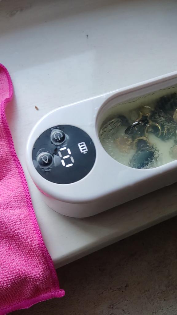 'ungleichmäßige Vibration. Links mehr. Vielleicht habe ich zu kurz eingeschaltet. Nun, es gibt keinen wahnsinnigen Effekt auf dem Schmuck. Ich werde es noch länger versuchen. Im Moment 4 Sternchen