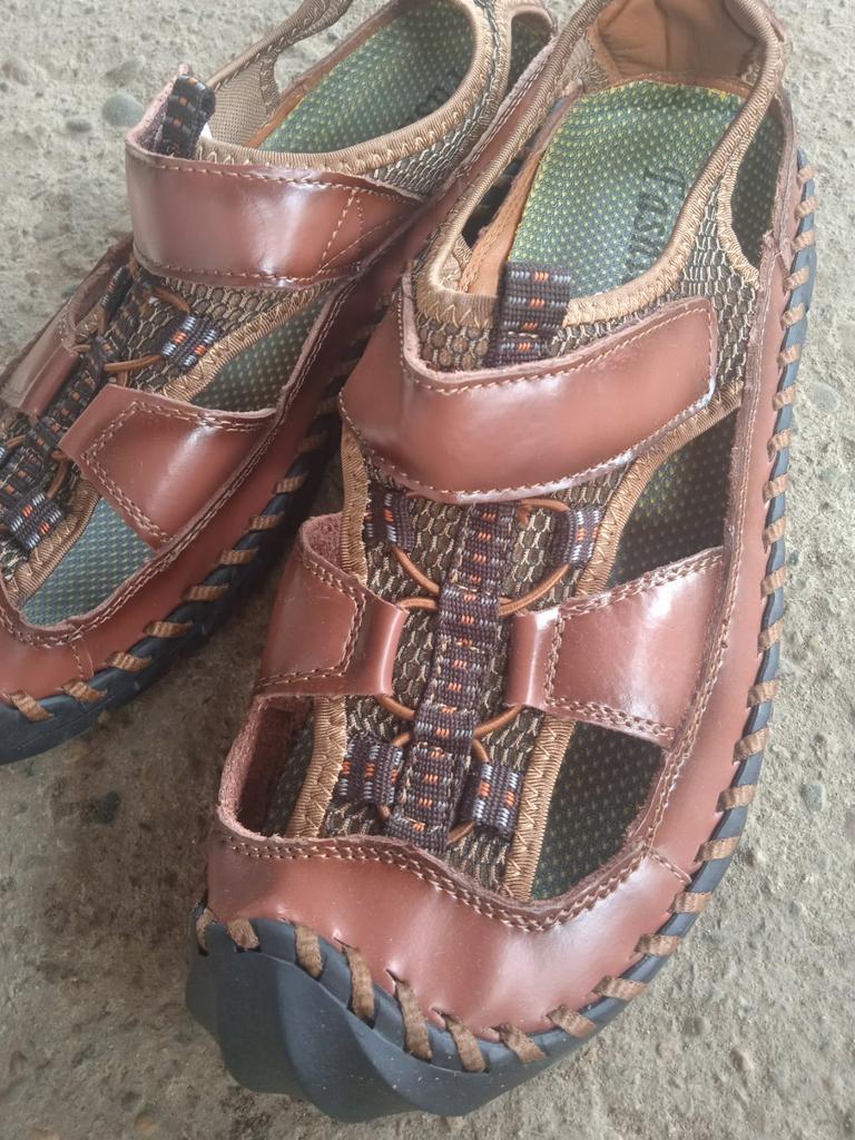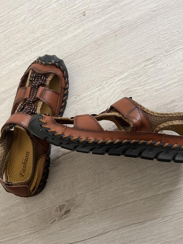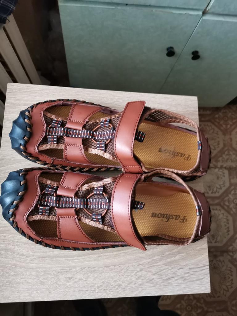 Gute Sandalen fallen mit 41 klein aus, ich habe 44 genommen, aber diese sind etwas zu groß, ich hätte 43 nehmen sollen, aber es sieht aus wie Leder.