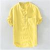 Männer Sommer Top Casual Einfarbig Tasche Dünne Kurzarm Shirts Lose Atmungsaktive Stehkragen Pullover Hemd Mann