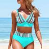 Damen-Bikini-Tankini-Badeanzug mit Neckholder-Tintenstreifen-Print