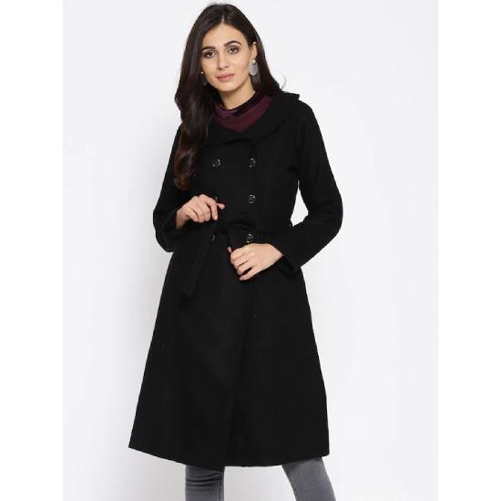Elegante Mitternachtsaffäre: Zeitloser schwarzer Longline-Mantel für Damen