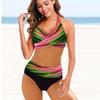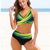 Damen-Badeanzug mit Schultergurt, Farbverlauf, grüner Aufdruck, Bikini-Tankini-Badeanzug