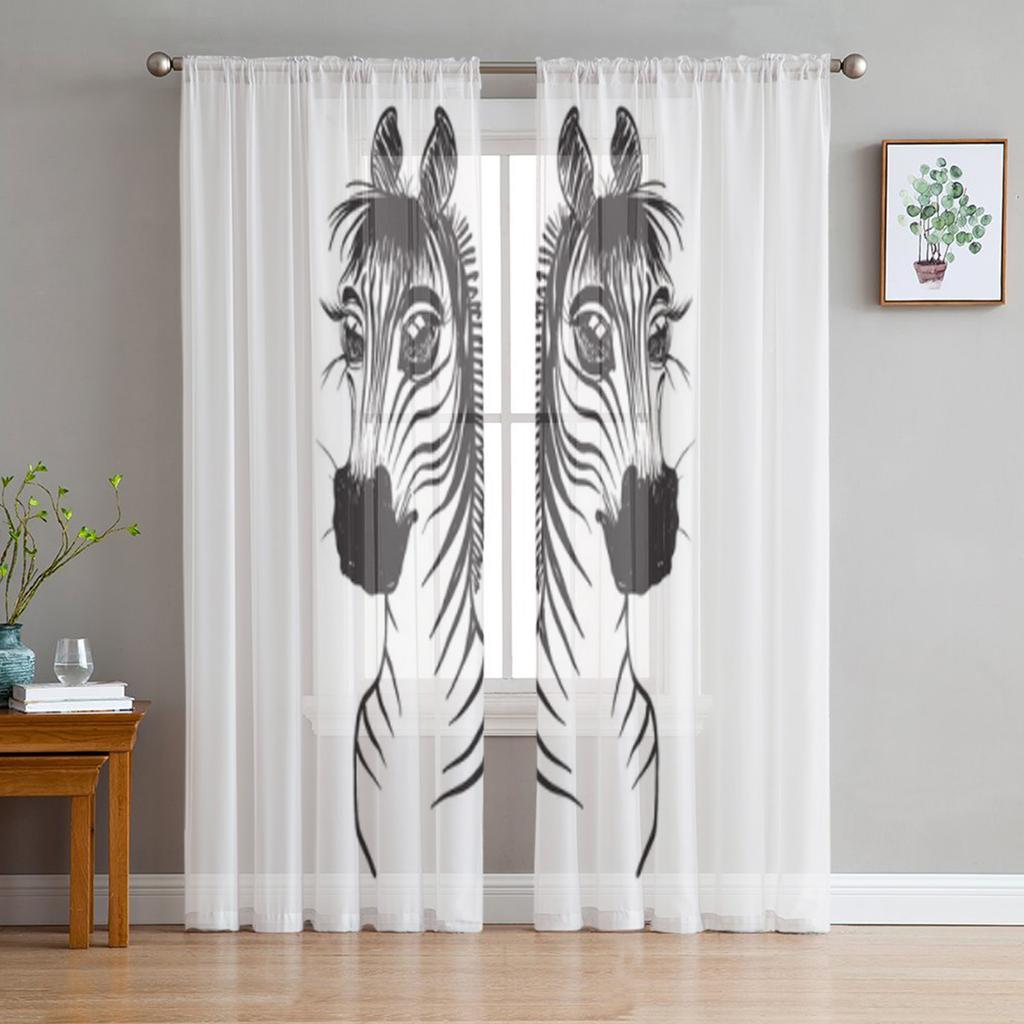 Skizzen Tüllvorhänge für Wohnzimmer Schlafzimmer Weihnachten Chiffon Transparent Voile Küchenvorhang