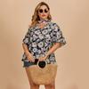 Sommer-Damenhemd, großes Temperament, Pendler-Oberteil, hängender Hals, Lotusärmel, Blumenhemd