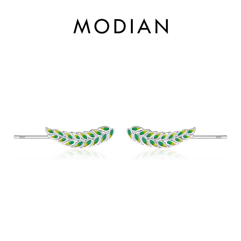 MODIAN Massives 925er Sterlingsilber, minimalistische Ohrstecker mit Baumblättern aus Emaille, trendige, schlichte Ohrringe für Frauen, edler Schmuck, Geschenk