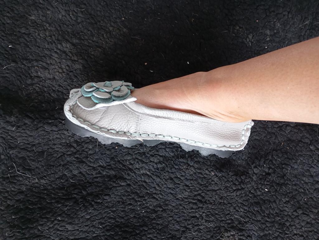 Damen-Slipper, echtes Spaltleder, flache Absätze, Blumen-runde Zehenpartie, weiche, feste Sandalen, Plattform-Damenschuhe