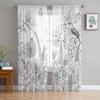 Schwarz-weiße Löwenzahn-Tüllvorhänge für die Wohnzimmerdekoration, moderner, durchsichtiger Chiffon-Voile-Küchenvorhang