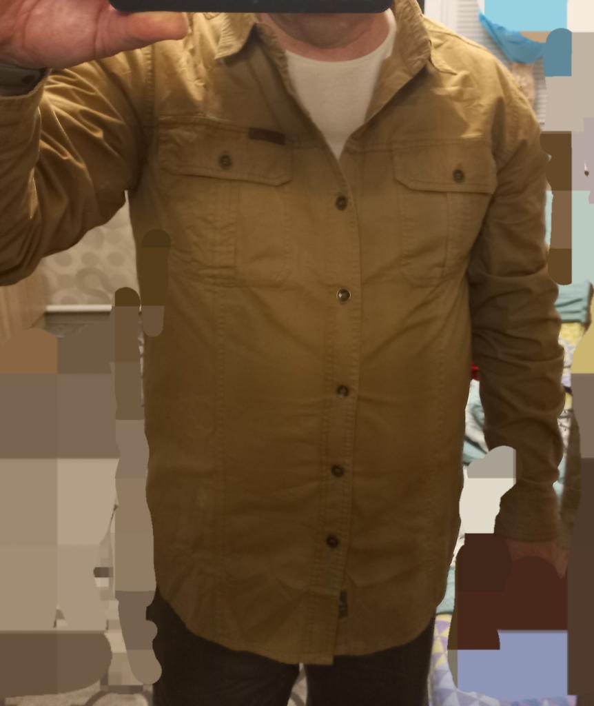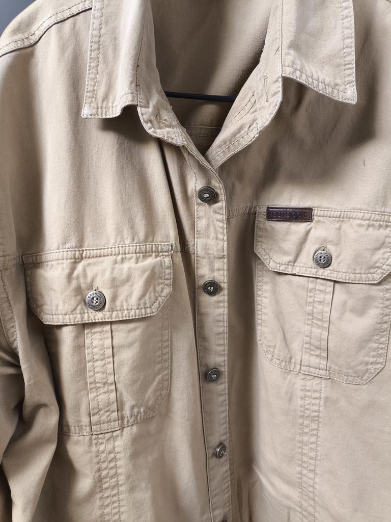 Davor habe ich die Farbe Khaki gekauft. Dieses Hemd unterscheidet sich vom vorherigen dadurch, dass es eine Nummer größer ist (obwohl es dasselbe XL ist), und auch die Knöpfe sind anders. Die Knöpfe am ersten Hemd waren besser. Die Qualität des Materials und die Verarbeitung sind gut.. Ergänzung - Nach dem ersten Tag des Tragens des Hemdes habe ich fast drei Knöpfe verloren, ich musste alle Knöpfe verstärken. Ein Foto zum Vergleich dieses Hemdes und des vorherigen (Khaki-Farbe) füge ich bei. Dafür ziehe ich zwei Sterne ab.