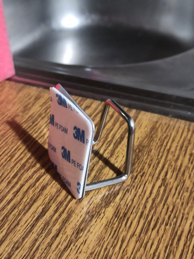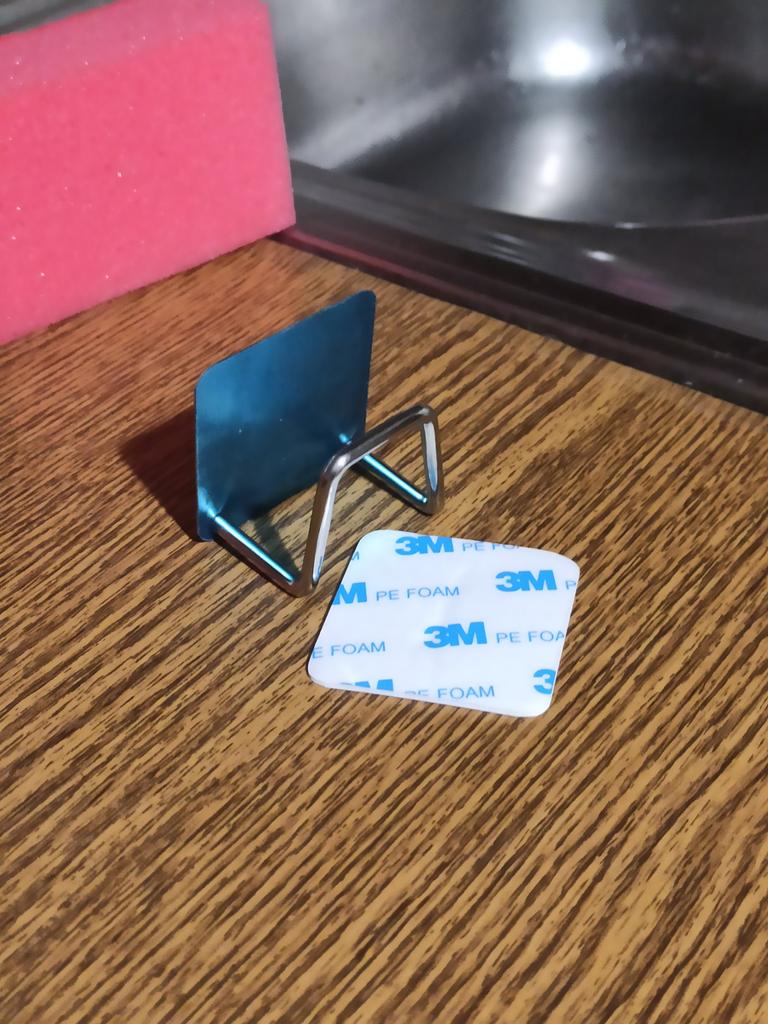 Schwammhalter für Waschbecken. Haltermaterial: Edelstahl, keine Angst vor Feuchtigkeit. Abmessungen: 4,9 * 4,9 cm. Der Halter ist einfach zu installieren, erfordert kein Bohren, sondern wird einfach mit starkem doppelseitigem Klebeband (im Lieferumfang enthalten) befestigt und hält gut im Waschbecken. Der selbstklebende Halter kann nicht nur für die Spüle, sondern auch für andere Küchenutensilien (Bretter, Waschlappen etc.) verwendet werden.. Ich habe es speziell für das Waschbecken bestellt. Bereits angebracht hält es fest, nun ist der Spülschwamm immer an seinem Platz.
