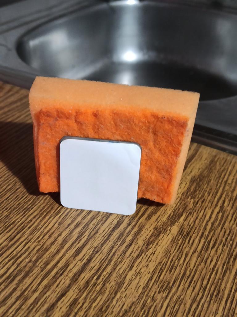 Schwammhalter. Notwendige Sache. Bequem zu verwenden. Der Halter ist aus Metall, hat eine Schutzfolie, damit der Halter bei der Lieferung nicht beschädigt wird Die Befestigung erfolgt mit dem im Kit enthaltenen Selbstklebeband. Hält fest und zuverlässig, fällt bei Kontakt mit Wasser nicht ab. Kauf erforderlich.