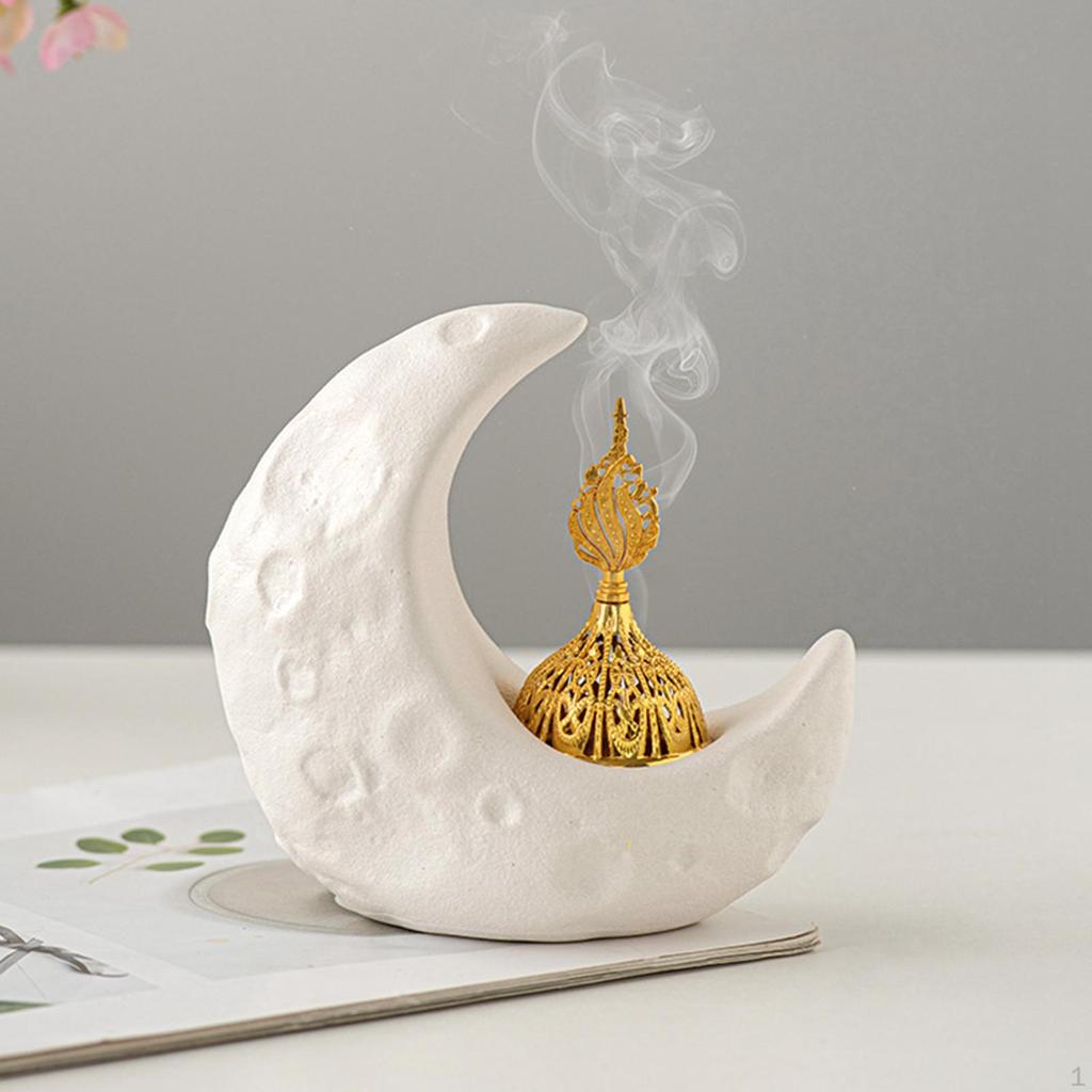 - 【Material】: Dieses Ramadan-Räuchergefäß mit Halbmond-Motiv ist aus hochwertigem Keramikmaterial gefertigt. Es zeichnet sich durch exquisite Details aus, die ihm ein feierliches und elegantes Aussehen verleihen und Ihnen einzigartige dekorative Effekte bieten.