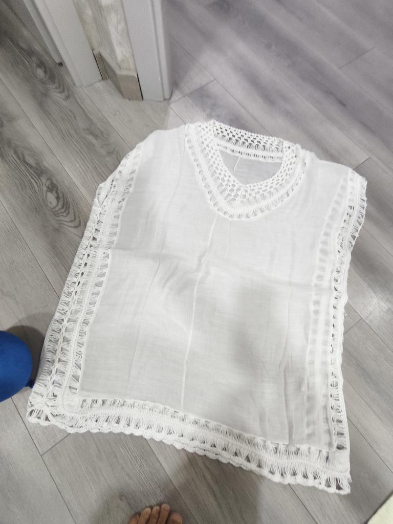 Ausgezeichnete Tunika. Leicht, passt größenmäßig (ich trage Größe 50). Für den Strand wird sie gut sein.