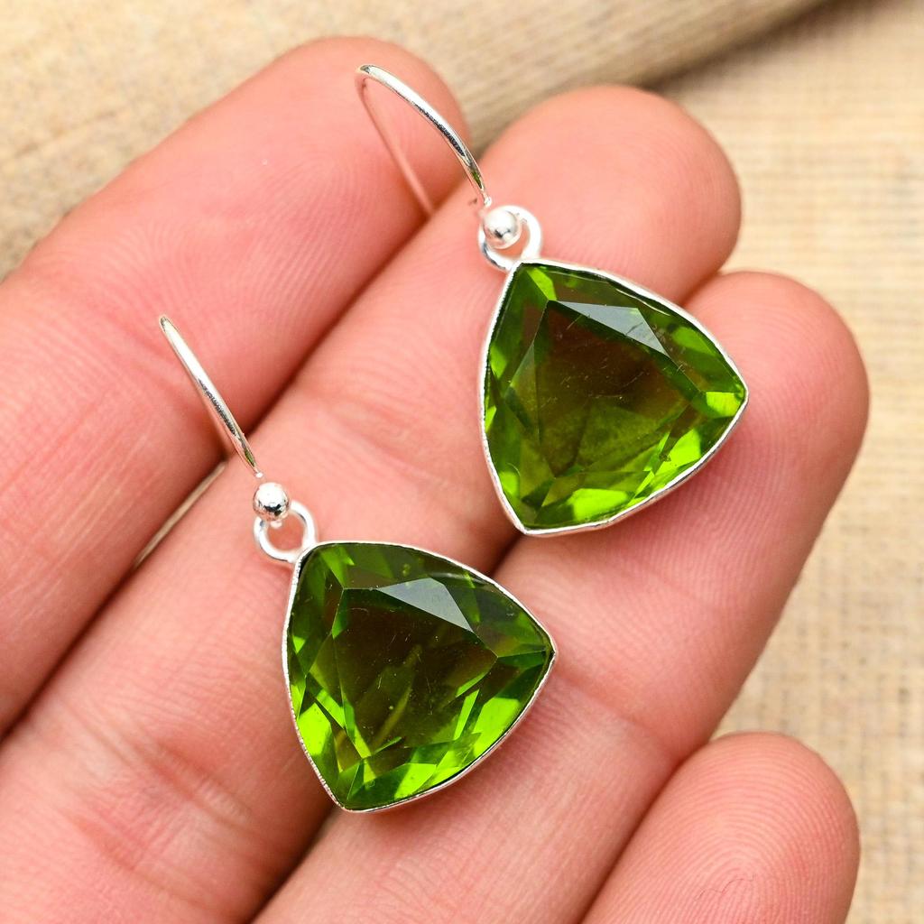 Peridot-Edelstein, handgefertigt, 925er-Sterlingsilber, Schmuckohrringe für Frauen