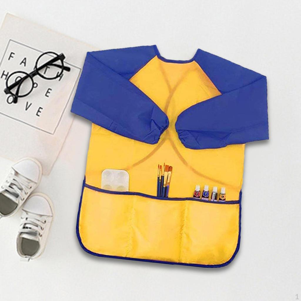 - [Design] : Unsere Kinder-Kunstschürze hat 3 Taschen zur Aufbewahrung von Pinseln und Farben oder anderen Werkzeugen, was den Kindern das Spielen erleichtert.. Der Kittel hat lange Ärmel und die Kinder können ihn mit dem Riemen auf der Rückseite festbinden, um ihn zu sichern. Er ist sehr angenehm zu tragen.