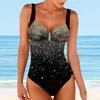 Damen-Badeanzug mit Schultergurten, blauer Blasen-Pailletten-Print, Bikini-Tankini-Badeanzug