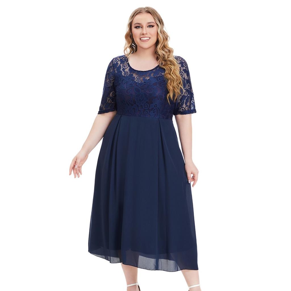 Elegantes, ausgehöhltes Spitzenkleid für Frauen in Übergrößen im europäischen und amerikanischen Stil