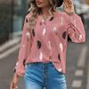Damenmode, lockeres V-Ausschnitt-Federdruck-Langarm-Pullover-Hemd-Oberteil