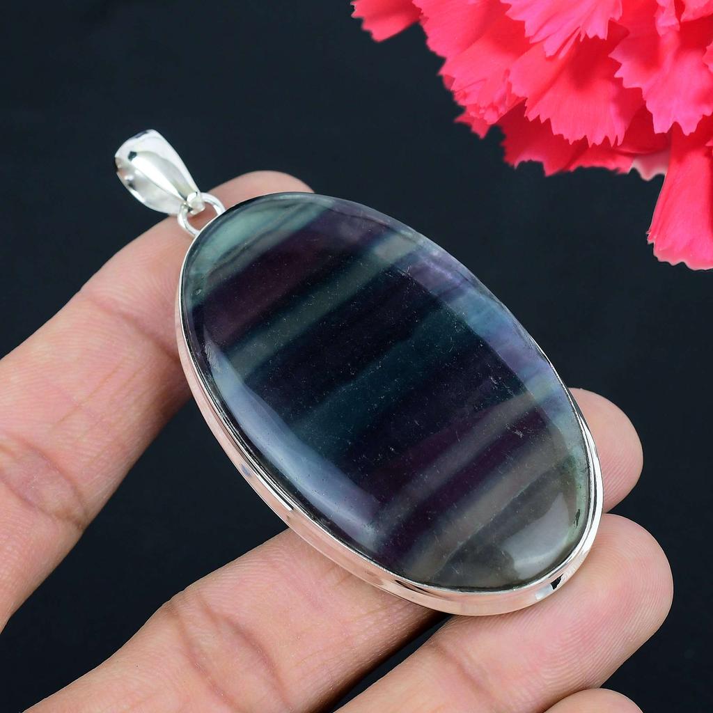 Fluorit Edelstein Anhänger Massiv 925 Sterling Silber Anhänger Schmuck Geschenk für Unisex