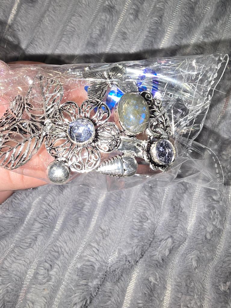 Natürlicher Labradorit, Amethyst Edelstein 925 Sterling Silber Manschettenarmreif Adj. n2W91