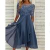 Kleider für Frauen, elegantes, fließendes Spitzen-Chiffon-Kleid, Abend-Party-Kleid, halbe Ärmel, Spitzen-Chiffon-Kleid